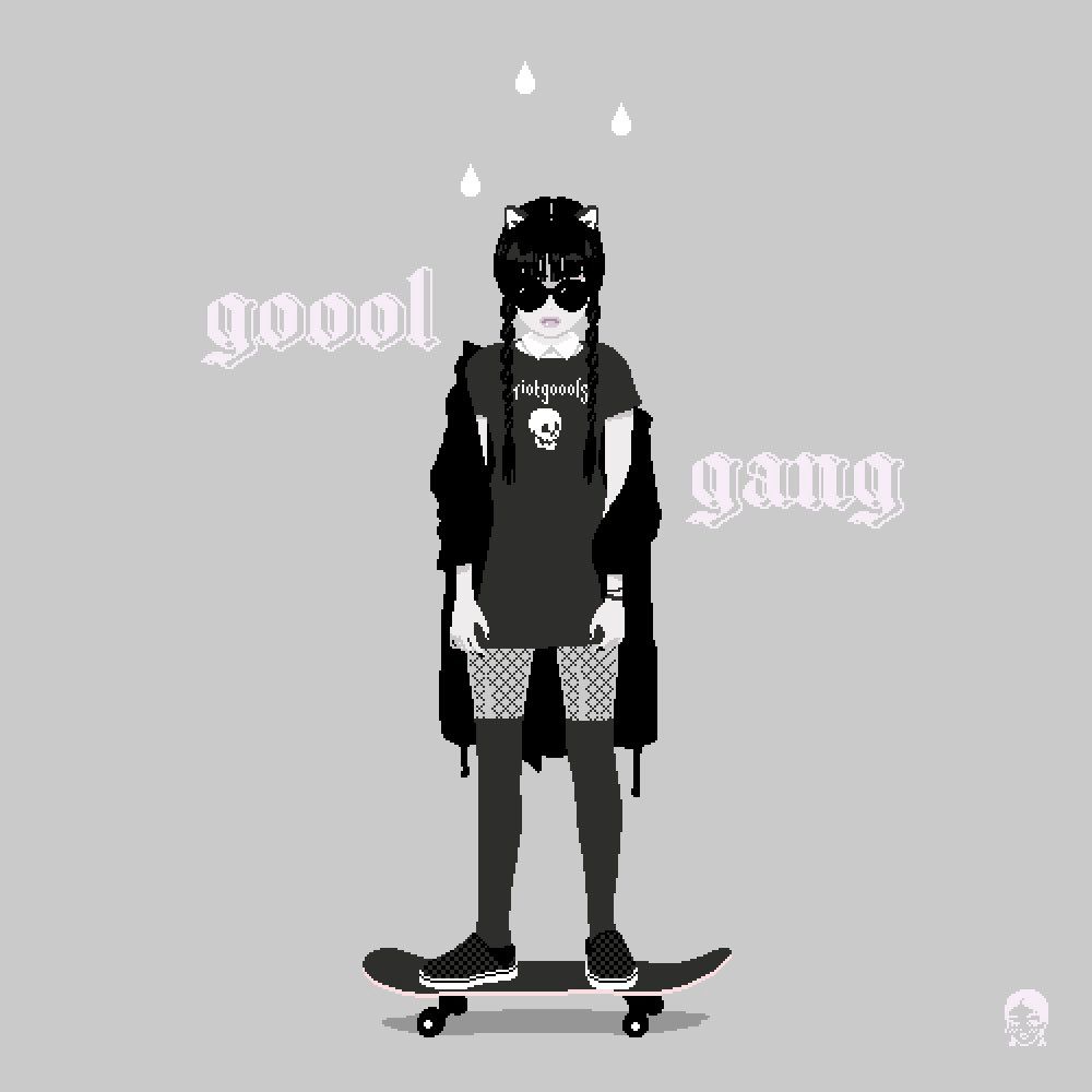 been watching and chatting about #wednesdaynetflix in gooolchat lately so i did a #wednesdayaddams inspired goool look 🖤🤘🏻🪦 #riotgoools #pixelart